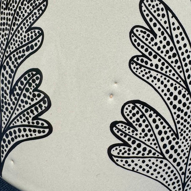 These lamp bases are made from ceramic decorated with beautifully drawn plants, this one in a pale glaze with a hint of green. Its a second because of a small fault in the glaze (see detail pic)