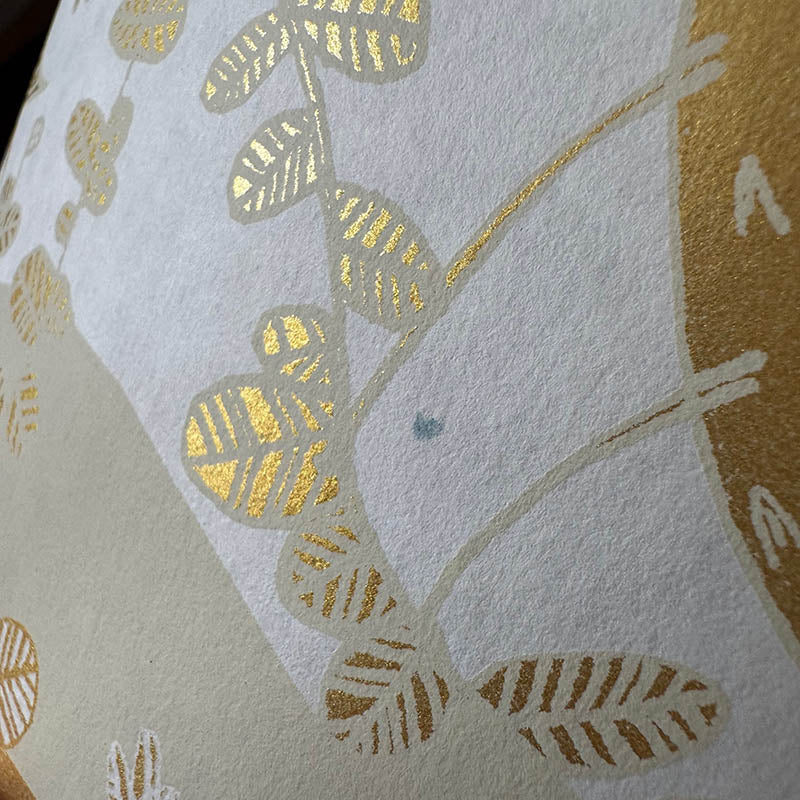 None of us are perfect, so have a heart and give a home to a shade with a slight difference. One of our studio seconds in lustrous gold, this one has a barely ink spot which is shown in the detail photo. It's great value and once your shade is installed and lit it will look splendid!