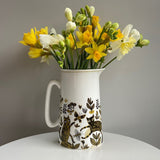 Dainty bone china 1 pint jug featuring a chorus of birds in the woods with a beautiful patterned handle. A jug can also be a vase! Pop a posy of flowers in it or use it for milk at the breakfast table. A perfect gift for a bird lover. Also comes in orange.