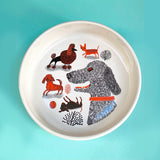This beautiful at feeding bowl is made of sturdy, dishwasher-safe stoneware and is beautifully decorated with a pair of pussies, one fat cat showing us his ginger tum, and one sleepy puss, probably purring. Luscious fig leaves decorate the sides so this bowl is pretty from any angle.